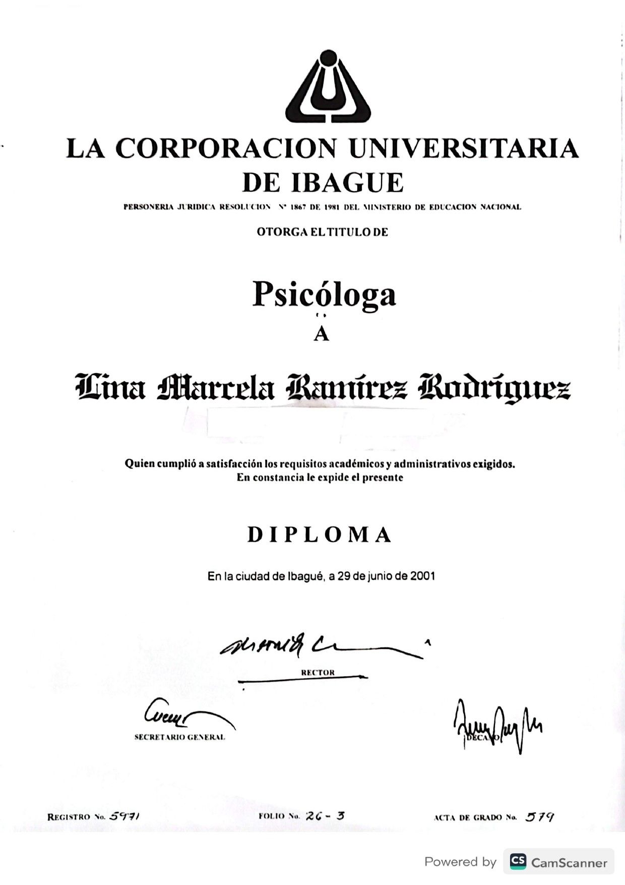 Psicóloga egresada de la Universidad de Ibagué, con énfasis en el campo clínico y organizacional. Especialista en Gerencia de la Seguridad y Salud en el Trabajo. Con diplomados en: